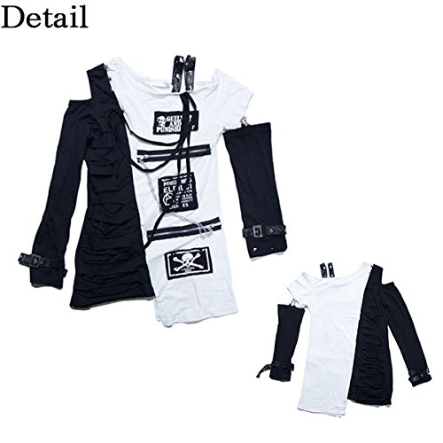 (ロンT)アシメL/S Tシャツ 黒 白【 パンク ロック Tシャツ ロンT ロングTシャツ 原宿系 】