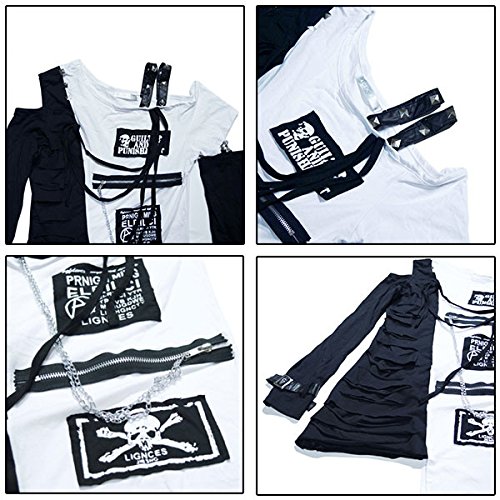 - アシンメトリーなデザインにZIP、チェーン、ドクロなど 装飾満載なロングTシャツ!