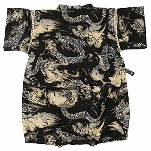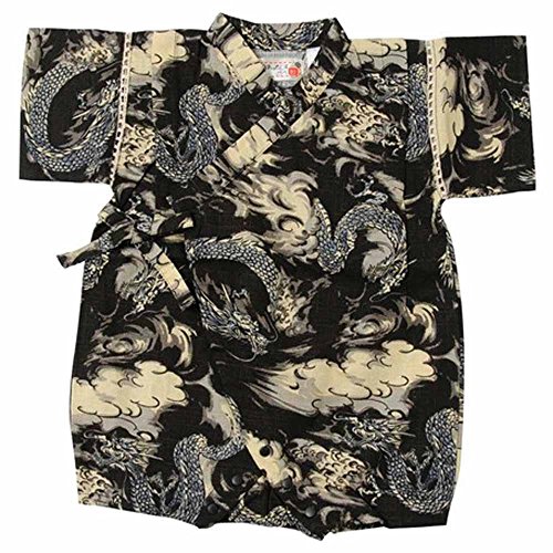 【ベビー服】【子供服】【甚平】サザンクロス水墨龍甚平ロンパース(70, 黒) 梯子レース付 9451-500-S2じんべい ジンベイ(hamajoy)