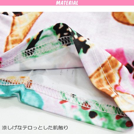 POPなTシャツです!いろんなアイスが絵が描かれていてとってもかわいいです!女性はダボッと着れるのでパンツでもスカートでも似合います!男性も着ることができます!!とても着やすいです!!【肩幅:約39cm】【胸囲:約88cm】【着丈:約36cm】【そで丈:約18cm】