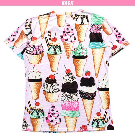 (Tシャツ)コーンアイス Tシャツ ピンク パステルカラー アイス スイーツ 原宿系 ヒップホップ