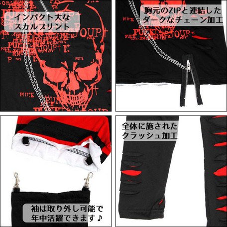 王道なパンクな洋服です! V系ライブでも使えちゃいます!生地も気持ちよくて着心地もいいですよ!袖は取り外し可能なのでオールシーズン 使えますよ!フリーサイズ 肩幅:約40cm位 胸囲:約90位 着丈:約63cm位