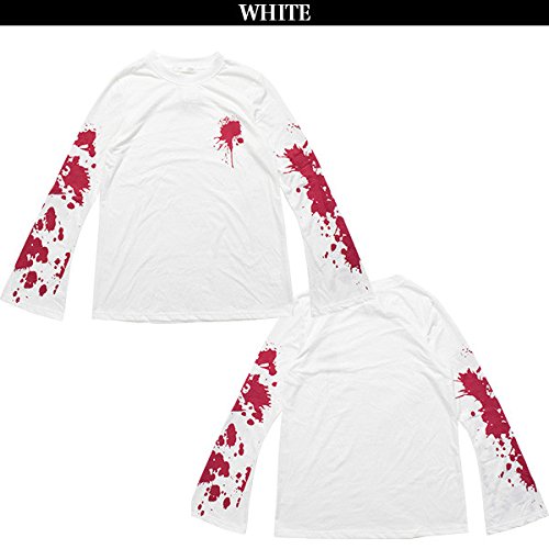 (ロンT)ブラッド ロンT (ホワイト)Tシャツ 長袖 ロング パンク ロック モード 原宿系 V系 白 血飛沫 血 フレア袖 ACDC