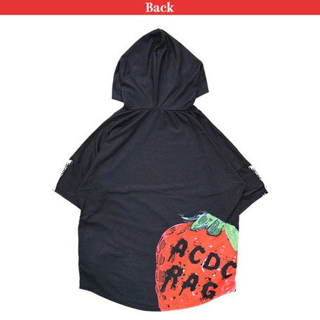 (パーカー)赤ストロベリー半袖 パーカーワンピ キャンディ 毒 毒かわ 原宿系 青文字系 グロかわ ACDCRAG
