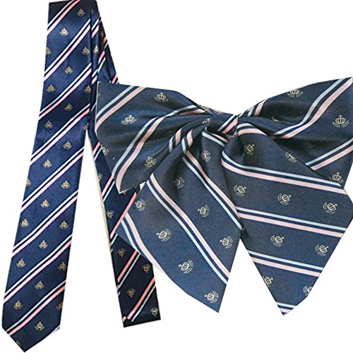 紺地にストライプ、王冠のついたネクタイとリボンのセットです! 現役の女子高生はもちろんイベントやライブでのコスプレにも! ネクタイはユニセックスなので制服ディズニーでカップルで同じ柄のリボン&ネクタイをつけれちゃいます♪
