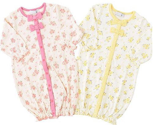 【ベビー服】【子供服】【ロンパース】☆花 りぼん プリントベンリードレス☆(黄色)女の子 綿100% 2way コットン100% カバーオール 前開き 可愛い