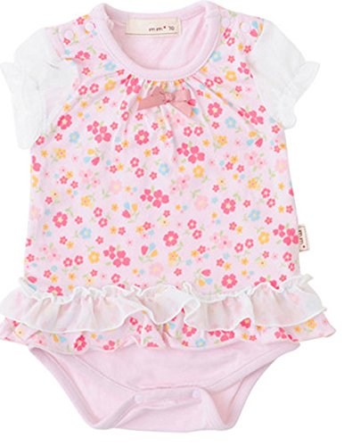 【ベビー服】【子供服】天竺花柄レース半袖コンビ (80cm, ピンク) 51285(hamajoy)