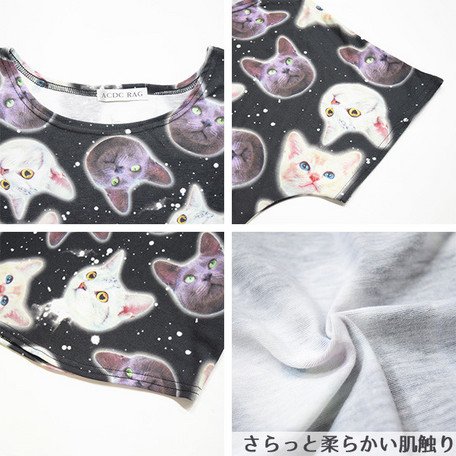 (Tシャツ)【洋服】【トップス】【半袖】【Tシャツ】CAT Tシャツ ネコ 猫 猫柄 ネコ柄 ねこ原宿系 宇宙柄 ACDC