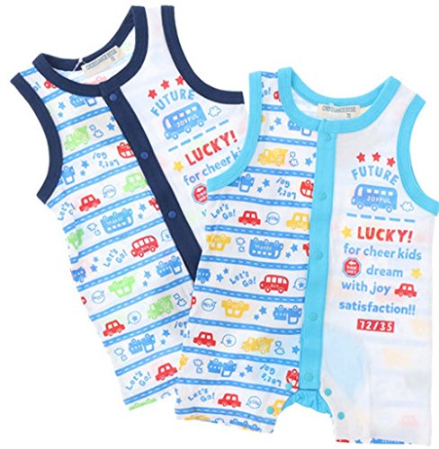 カッコ可愛い車とボーダー柄のノースリーブのロンパース☆ シンプル過ぎない英字やバスの柄は子供に人気♪