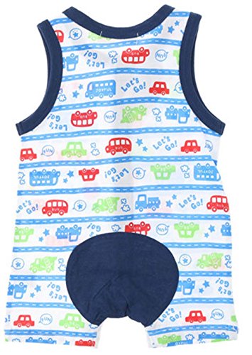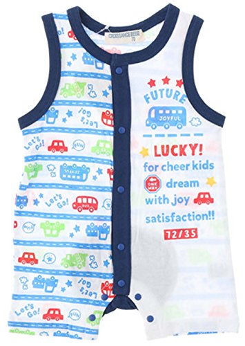 【ベビー服】☆天竺車柄ノースリロンパス☆ (70cm, ネイビー)5958-500-2F【子供服】【ロンパース】 男の子 女の子 綿100% コットン100% カバーオール 前開き 可愛い