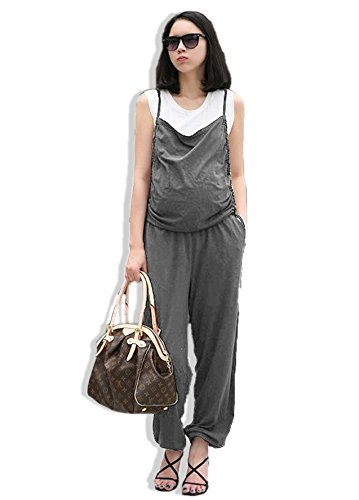 hanano おしゃれ マタニティ オールインワン オーバーオール サロペット かわいい カジュアル マタニティー服 楽 フリーサイズ (グレー)