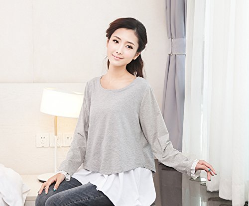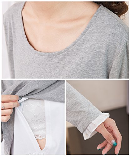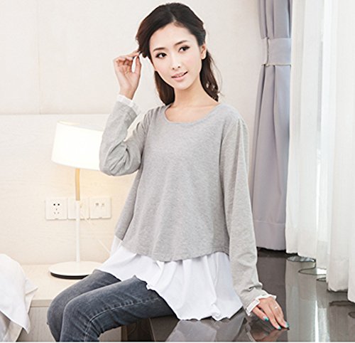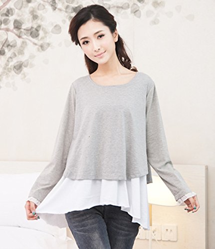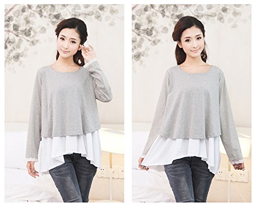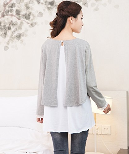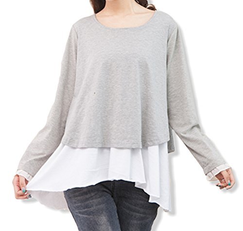 hanano 授乳服 産前 産後 妊婦用 レイヤード 重ね着風 マタニティ トップス 授乳口付 グレー M