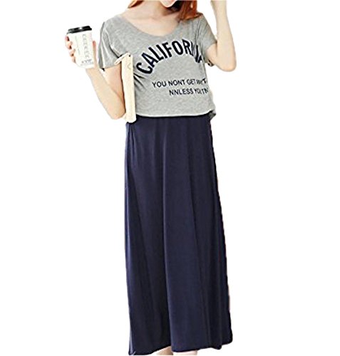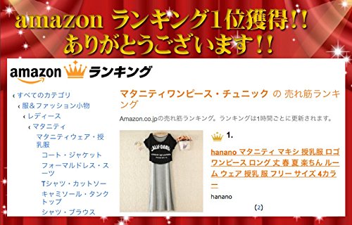 hanano マタニティ マキシ 授乳服 ロゴ ワンピース ロング 丈 春 夏 楽ちん ルーム ウェア 授乳 服 フリー サイズ 4カラー (ネイビー&グレー)