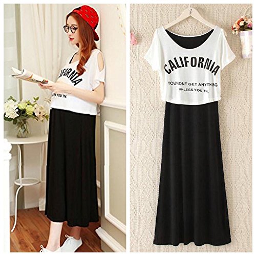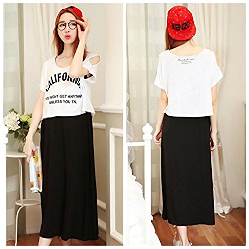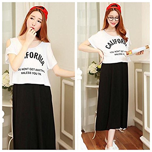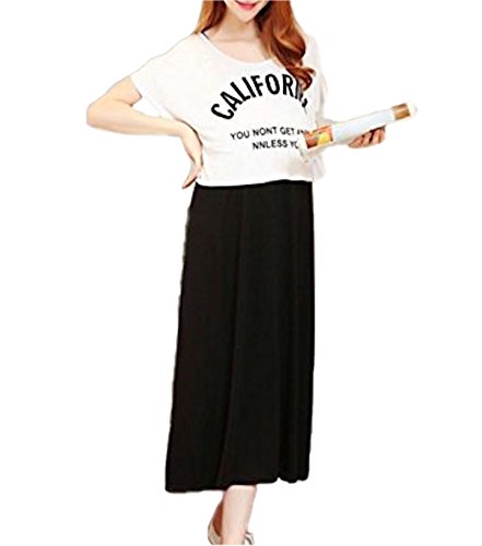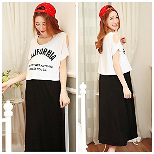 hanano マタニティ マキシ 授乳服 ロゴ ワンピース ロング 丈 春 夏 楽ちん ルーム ウェア 授乳 服 フリー サイズ 4カラー (ブラック&ホワイト)