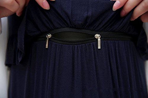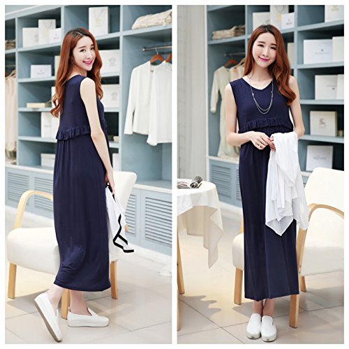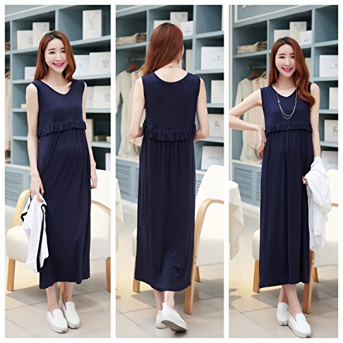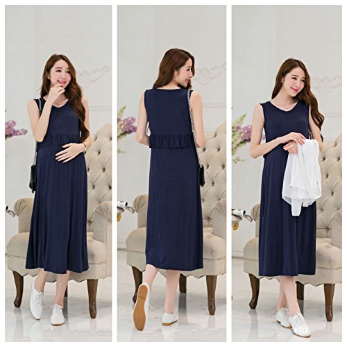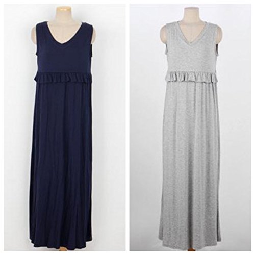 hanano 授乳ファスナー マタニティ フリル 着痩せ ロング ワンピース & カーディガン【全2色】 (M, ワンピース(ネイビー))