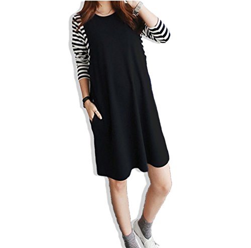 【Blume】マタニティ 長袖 授乳 チュニック ミニ ワンピース レイヤード風 楽ちん フリーサイズ (ブラック)