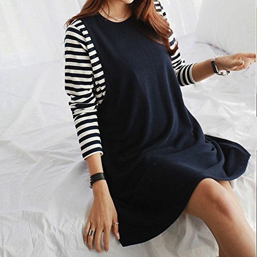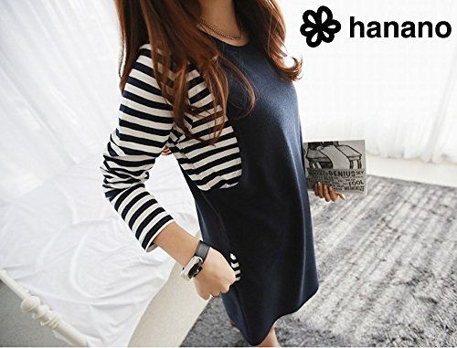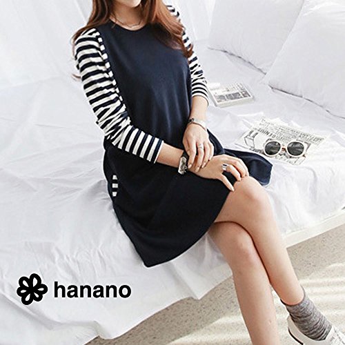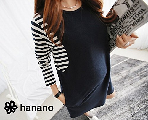 【Blume】マタニティ 長袖 授乳 チュニック ミニ ワンピース レイヤード風 楽ちん フリーサイズ (ネイビー)