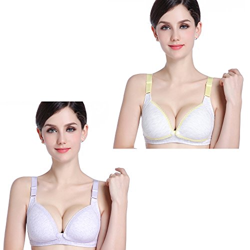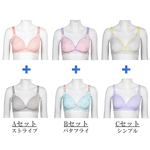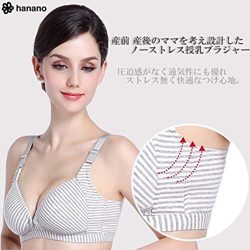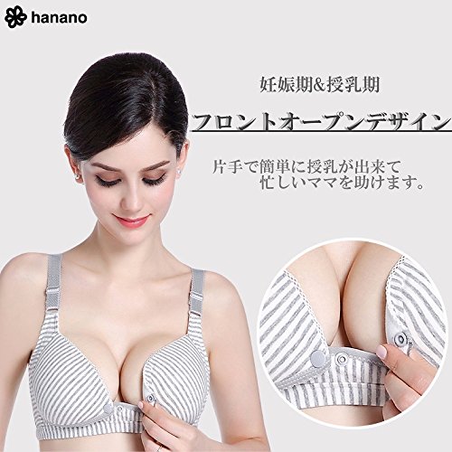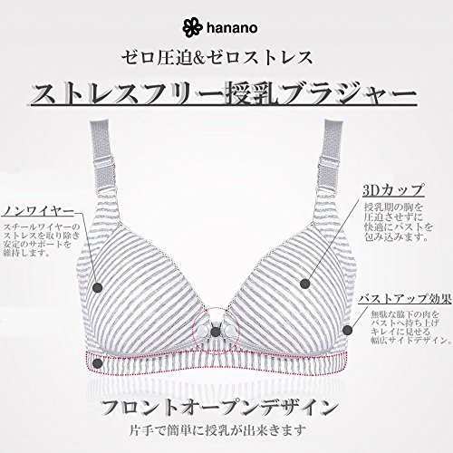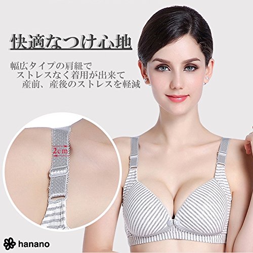 【hanano】産前 産後 ノーストレス 授乳ブラジャー 前開きノンワイヤー やさしい綿 妊娠期 マタニティ ナイト ブラジャー 1枚 2枚セット (S(75), セットC(シンプル))