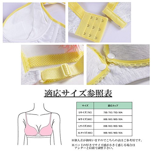 - 素材:95%綿・5%ポリウレタン繊維。カップ内側は綿100%。素材は肌にやさしい生地を使用、上質で弾力性もあるので、引き締け感なく、つけ心地が良いです。