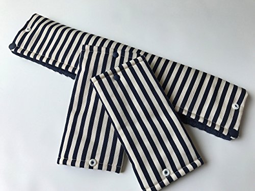 ☆赤ちゃんが舐めてしまうショルダー部分をカバーしてくれるよだれショルダーパッド ☆寝汗を吸収し首回りを優しく包んでくれる首回りネックパッド 赤ちゃんが1番舐める場所はよだれショルダーパッドと首回りネックパッドの境目なんです!そこをカバーしてくれるパッド2点セット♪ よだれショルダーパッドと首回りネックパッドを繋ぎ合わせるボタン付きで離れ離れにならず便利♪ 裏はデニム柄(ネイビー)でリバーシブル、パパ装着時もシンプルに決まります。 すべてプラスチックスナップボタンでの取り外しだから金属アレルギーの方にも安心です。 表布(ストライプ柄):綿100% 中布 :キルト芯・ドミット芯 裏布(デニム柄) :ダブルガーゼ