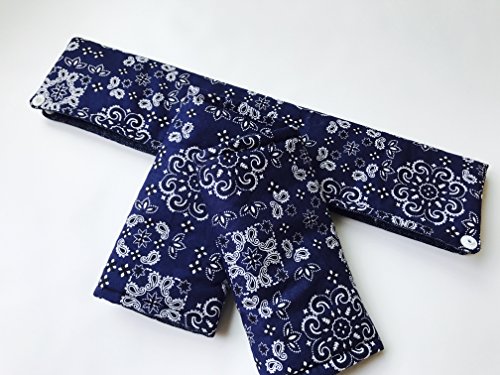☆赤ちゃんが舐めてしまうショルダー部分をカバーしてくれるよだれショルダーパッド ☆寝汗を吸収し首回りを優しく包んでくれる首回りネックパッド 赤ちゃんが1番舐める場所はよだれショルダーパッドと首回りネックパッドの境目なんです!そこをカバーしてくれるパッド2点セット♪ よだれショルダーパッドと首回りネックパッドを繋ぎ合わせるボタン付きで離れ離れにならず便利♪ 裏はデニム柄(ネイビー)でリバーシブル、パパ装着時もシンプルに決まります。 すべてプラスチックスナップボタンでの取り外しだから金属アレルギーの方にも安心です。 表布(バンダナ柄):綿100% 中布 :キルト芯・ドミット芯 裏布(デニム柄) :ダブルガーゼ