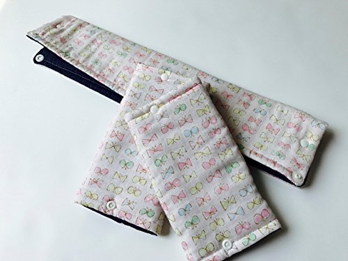 ☆赤ちゃんが舐めてしまうショルダー部分をカバーしてくれるよだれショルダーパッド ☆寝汗を吸収し首回りを優しく包んでくれる首回りネックパッド 赤ちゃんが1番舐める場所はよだれショルダーパッドと首回りネックパッドの境目なんです!そこをカバーしてくれるパッド2点セット♪ よだれショルダーパッドと首回りネックパッドを繋ぎ合わせるボタン付きで離れ離れにならず便利♪ 裏はデニム柄(ネイビー)でリバーシブル、パパ装着時もシンプルに決まります。 すべてプラスチックスナップボタンでの取り外しだから金属アレルギーの方にも安心です。 表布(リボン柄):ダブルガーゼ 中布:キルト芯・ドミット芯 裏布(デニム柄):ダブルガーゼ