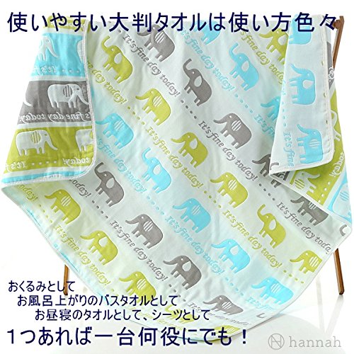 hannah 6重 ガーゼケット 天然コットン 大判 正方形 110×110 (ぞう ブルー)