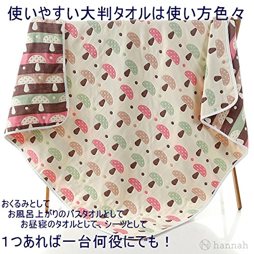 hannah 6重 ガーゼケット 天然コットン 大判 正方形 110×110 (きのこ ブラウン)