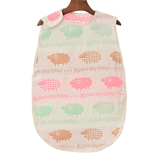 hannah 6重ガーゼ ベビー スリーパー ミニタオル付 冷え対策 熟睡 寒くない (M (ベビー), ひつじ柄)