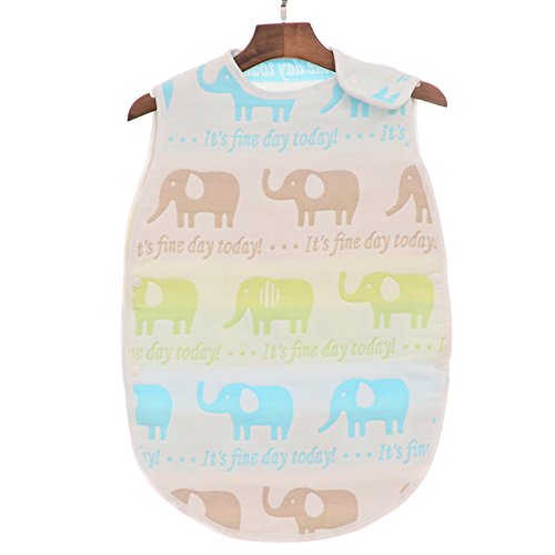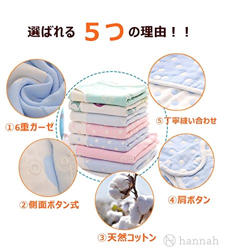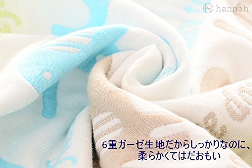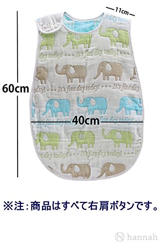 hannah 6重ガーゼ ベビー スリーパー ミニタオル付 冷え対策 熟睡 寒くない (M (ベビー), ぞう柄)