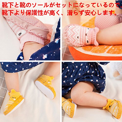 - 靴下と靴のソールがセットになっているので、靴下より保護性が高く、滑らず安心します。フローリングでも滑らないので、あんよの練習にもピッタリです。
