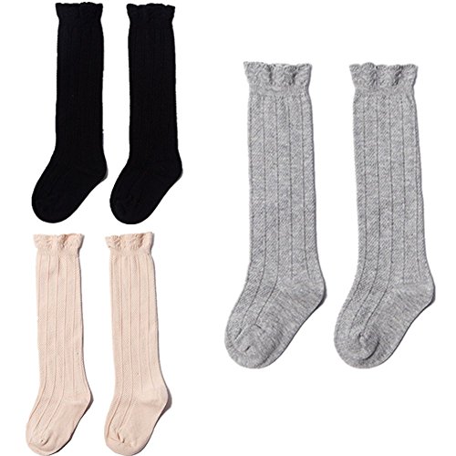 happy-JP ベビー ソックス 新生児 ロング 靴下 無地 赤ちゃん 女の子 ストッキング 綿 3足セット 春 夏 秋 冷房対策 日よけ ムール用 幼稚園 保育園 出産祝い プレゼント