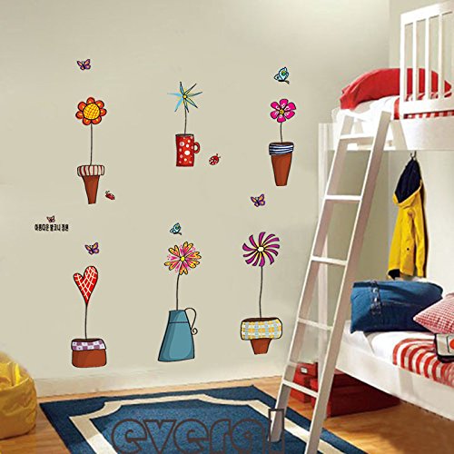 Flowerpotバタフライ壁ステッカー家の装飾947。DIY印刷壁画アート植物ホームデカール子供ギフトリビングベッドPlayroom 4.0 ^。