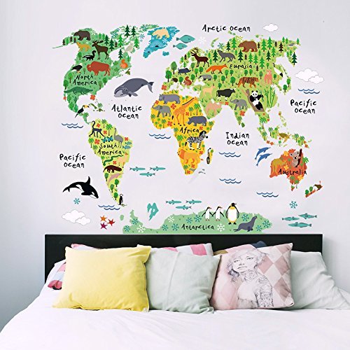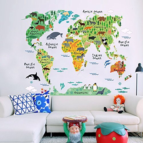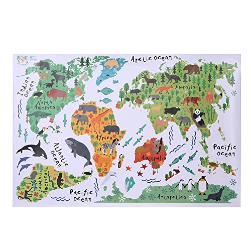 世界地図動物ウォールステッカールーム装飾漫画壁画アート動物園子供ホームデカールポスター5.0 ^。