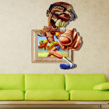 3dベビーキッズ部屋Cartoon Old Manビーチ水泳面白い壁デカール取り外し可能ペーパーステッカーアートDIY装飾^。