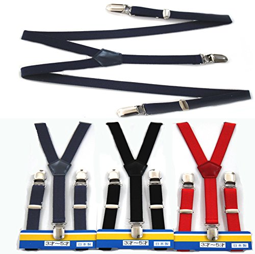 日本製 子供 サスペンダー キッズ 男の子 女の子 フォーマル カジュアル 入学式 発表会 黒 赤 紺 ブラック レッド ネイビー 1才 3才 5才 (02 ネイビー 1-3才)