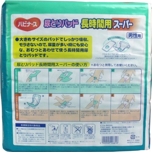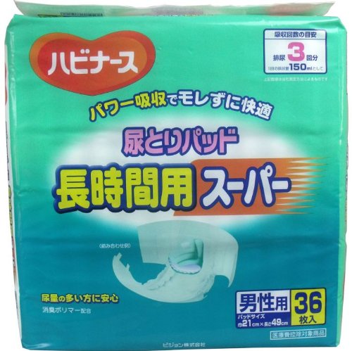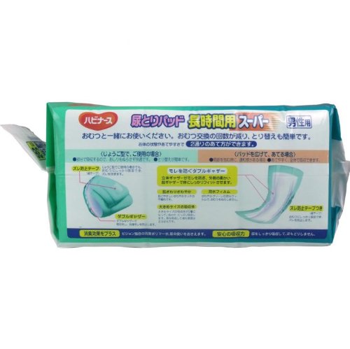 - パワー吸収でモレずに快適! 尿量の多い方に安心! おおきめサイズのパッドでしっかり吸収、モラさないので、尿量が多い時にも安心な、おむつとあわせて使う長時間用尿とりパッドです! ・おむつと併用してお使いください。 【医療費控除対象品】 【男性用】 【パッドサイズ】 巾21X長さ49cm 【吸収回収の目安】 排尿3回分(※1回の排尿量を150mLとして 【使用上の注意】 ・汚れたパッドは早くとりかえてください。 ・誤って口に入れたり、のどにつまらせることのないよう保管場所に注意し、使用後はすぐに処理してください。 【素材】 表面材: ポリオレフィン系不織布 吸収材:綿状パルプ/吸収紙/高分子吸収材 防水材:ポリオレフィンフィルム 止着材:粘着テープ 伸縮材:ポリウレタン 結合材:合成ゴム系接着剤