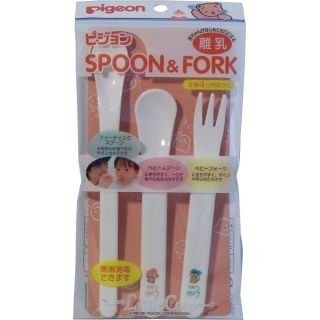 フィーディングスプーンとスプーン・フォークセット!赤ちゃんのおくちにぴったりサイズ!低月齢の赤ちゃんにも口あたりがやさしい、プラスチック製!