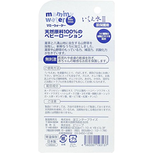 ベビー用ローション 無添加・無香料・無着色 人気の マミーウォーター いちえ水3 天然ベビーローション 100mL【2個セット】