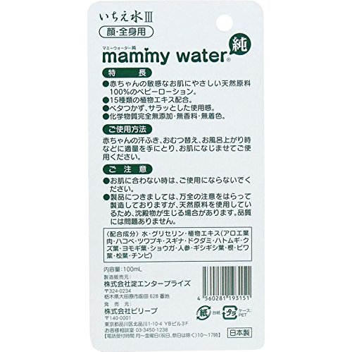 ベビーローション 化粧水 べたつかない、サラっとした使用感 ベビー用品 マミーウォーター純 いちえ水3 顔・全身用 無添加ベビーローション 100mL【2個セット】