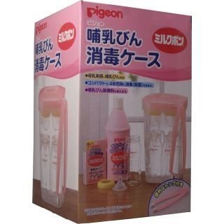 置き場所をとらないコンパクトなデザイン!4本同時に消毒・除菌できる!半透明で中がよく見えるので、フタをあけずに哺乳びんや乳首を確認できる!
