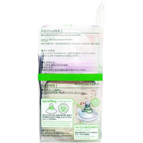 - ママにも優しい母乳育児のために♪ おっぱい感覚のほ乳びんで、家族みんなで子育て。 ママも嬉しい、ベビーも納得! 人間工学に基づいて設計された3Dボトルと、おっぱいのような感覚で飲める乳首の哺乳瓶です。 『PPSU製』 環境ホルモンを含まない素材で安心して使えます。 ●おっぱいと同じ感覚!乳首は柔らかいシリコーン製です。 ●衛生的なキャップ!キャップは転がりにくい形状で安定して置けます。また、口がテーブルなどにつかないので清潔を保てます。 ●開閉ラクラク! ●広口ボトル!洗いやすく、調乳もラクにできます。 ●3Dボトル!ママの手にしっかりフィットし、転がりにくいカタチです。 <ほ乳びんって必要なの?> ミルクはもちろん 完全母乳でも、乳首トラブルの時、体調不良でお薬を飲んだ時、誰かに赤ちゃんを預ける時などに必要に。 その時に慌てないように、慣らしておくと安心です。 【乳首サイズ】S:0~3ヵ月 ※授乳時間は10~15分を目安にして、赤ちゃんに合った乳首を選んでください。