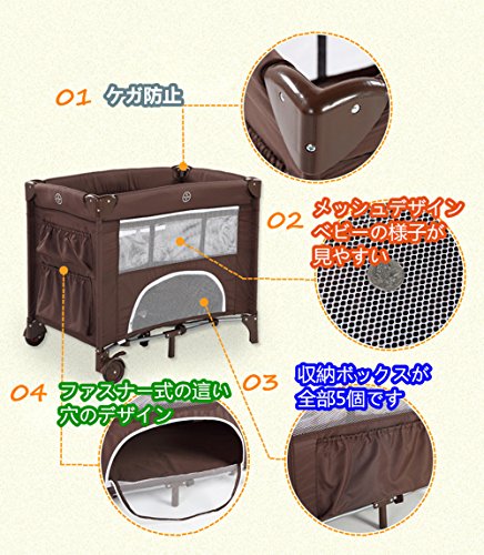 (ヘラサ)Herasa ベビーベッド折りたたみ ポータブル キャスター付き 軽量 コーヒー色