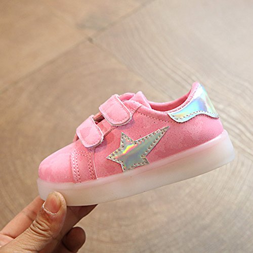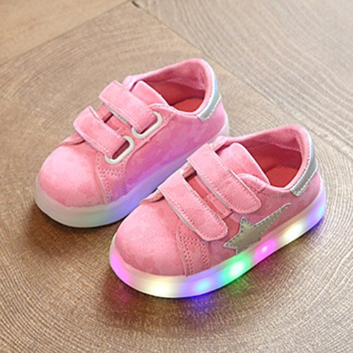 LEDスニーカー キッズスニーカー 光る靴 男女通用 子供用 13cm-18.2cm カップル hibote ピンク 28=内径17.2cm