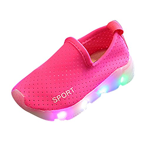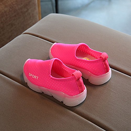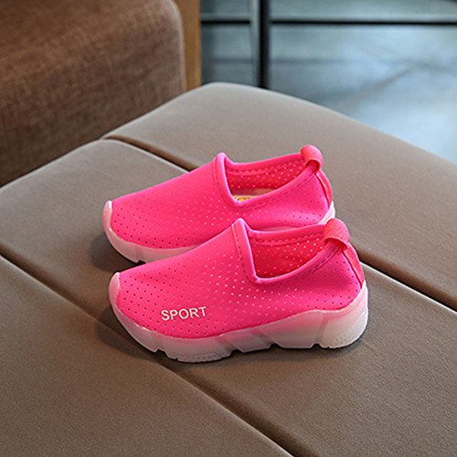 スニーカー キッズ LEDシューズ 発光シューズ 男女通用 運動靴 子供用 ガールズシューズ 13.5cm-18.8cm hibote ローズレッド 29=内径17.5cm