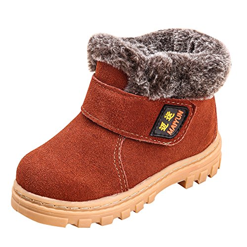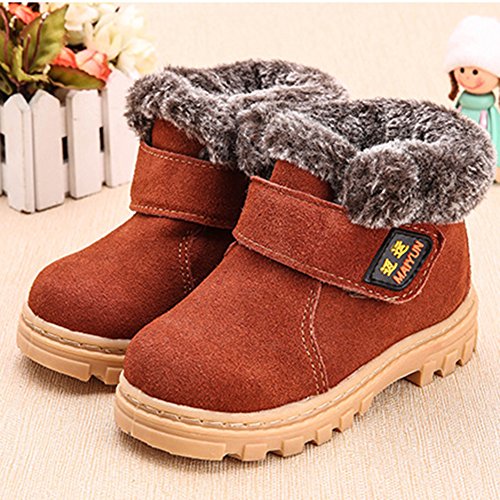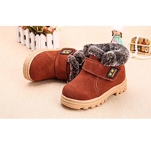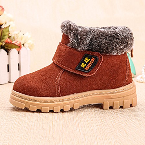 ショートブーツ キッズブーツ 秋冬履き子供シューズ 14.5cm-19.1cm 滑り止め 防寒ブーツ 絨毛 男女兼用 hibote ブラウン 内径15.8cm