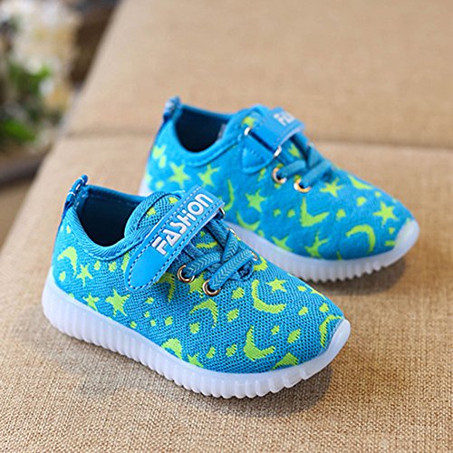 運動靴 キッズ LEDスニーカー 光る靴 男女通用 子供用 発光シューズ 13.5cm-18cm 夜光靴 hibote ブルー 26=内径16cm