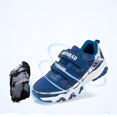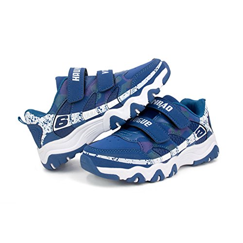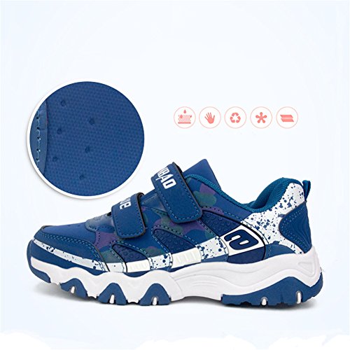 スニーカー 子供 キッズ 靴 ジュニア シューズ スリッポン 内径16cm-18.5cm 運動靴 軽量 通学 防滑 通気 hibote ブルー 内径16cm=26