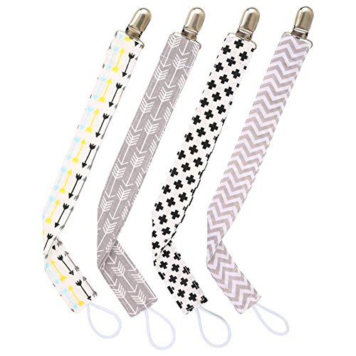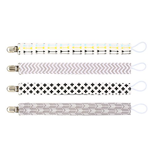 hibote 4枚組おしゃぶりホルダー ベビー 無毒 プリントのリボン グリップ かわいい 落下防止 紛失防止 28cm