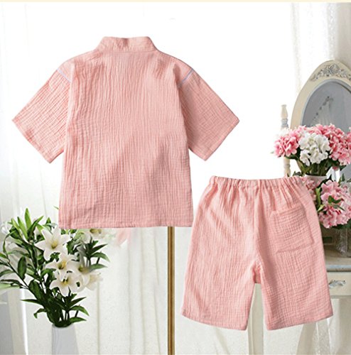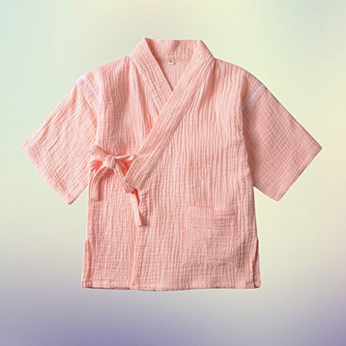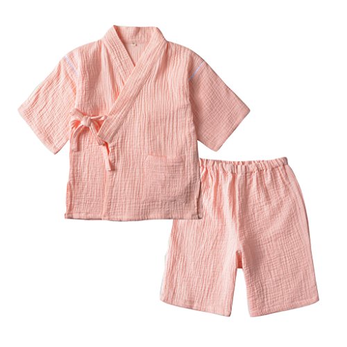 hibote 春夏 浴衣 甚平 子供服 着物 お祭り パジャマ 男女兼用 七五三 上下セット 夏祭り 花火大会 ピンク 120cm